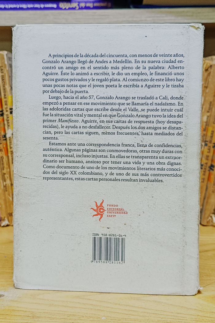 En estas cartas, Gonzalo Arango escribe desde la urgencia de quien todavía no sabe en qué se va a convertir, pero intuye que la vida debe ser vivida con radicalidad. Alberto Aguirre aparece como confidente, sostén y espejo: el amigo que escucha, que orienta, que cree cuando aún no hay razones visibles para creer. Entre Medellín, Cali y el Valle, la escritura va revelando dudas, entusiasmos, derrotas, iluminaciones súbitas y una fe obstinada en la palabra como forma de salvación.